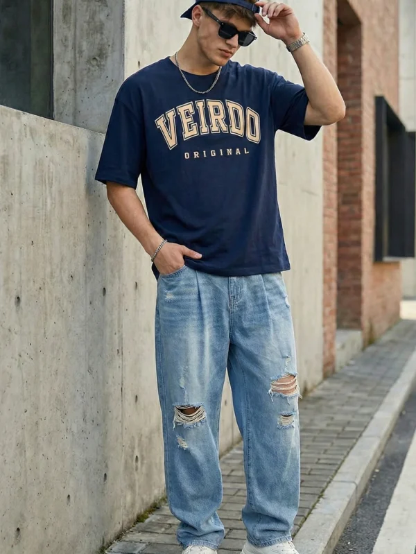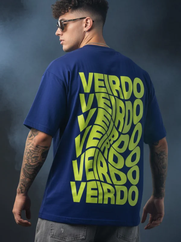 Blue Oversized Back Graphic Printed T-shirt for Men